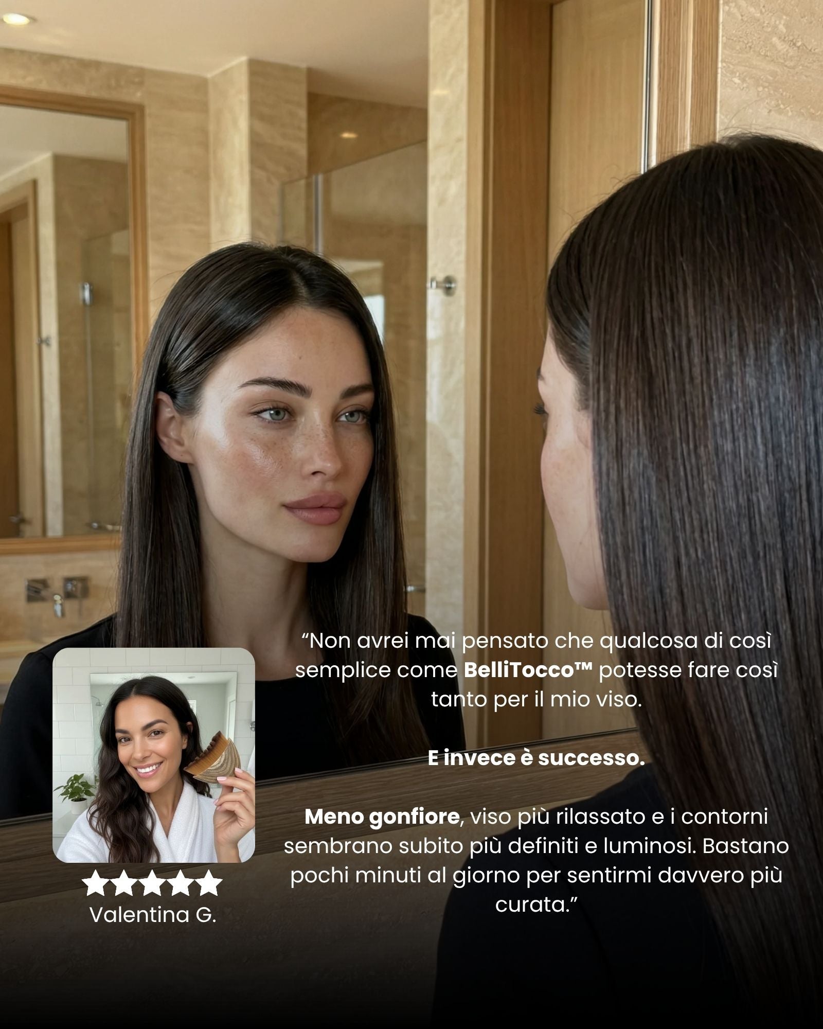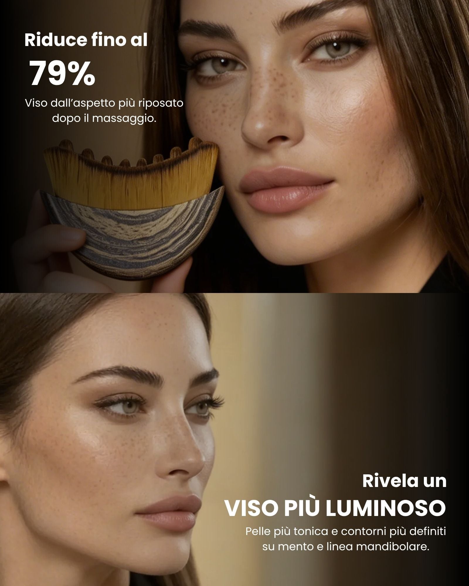 2–3 minuti al giorno. Subito meno gonfiore. Contorni più definiti con l’uso costante.