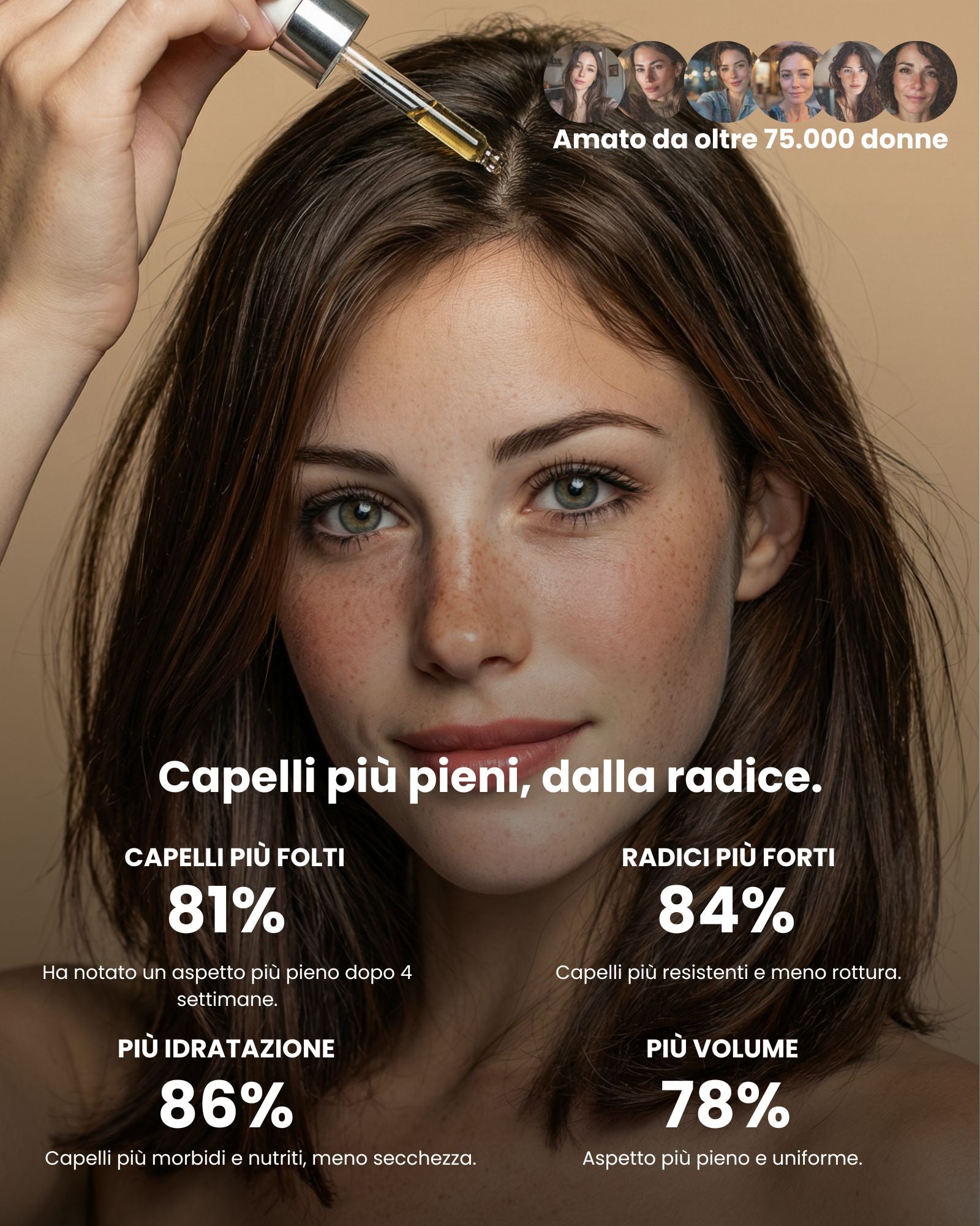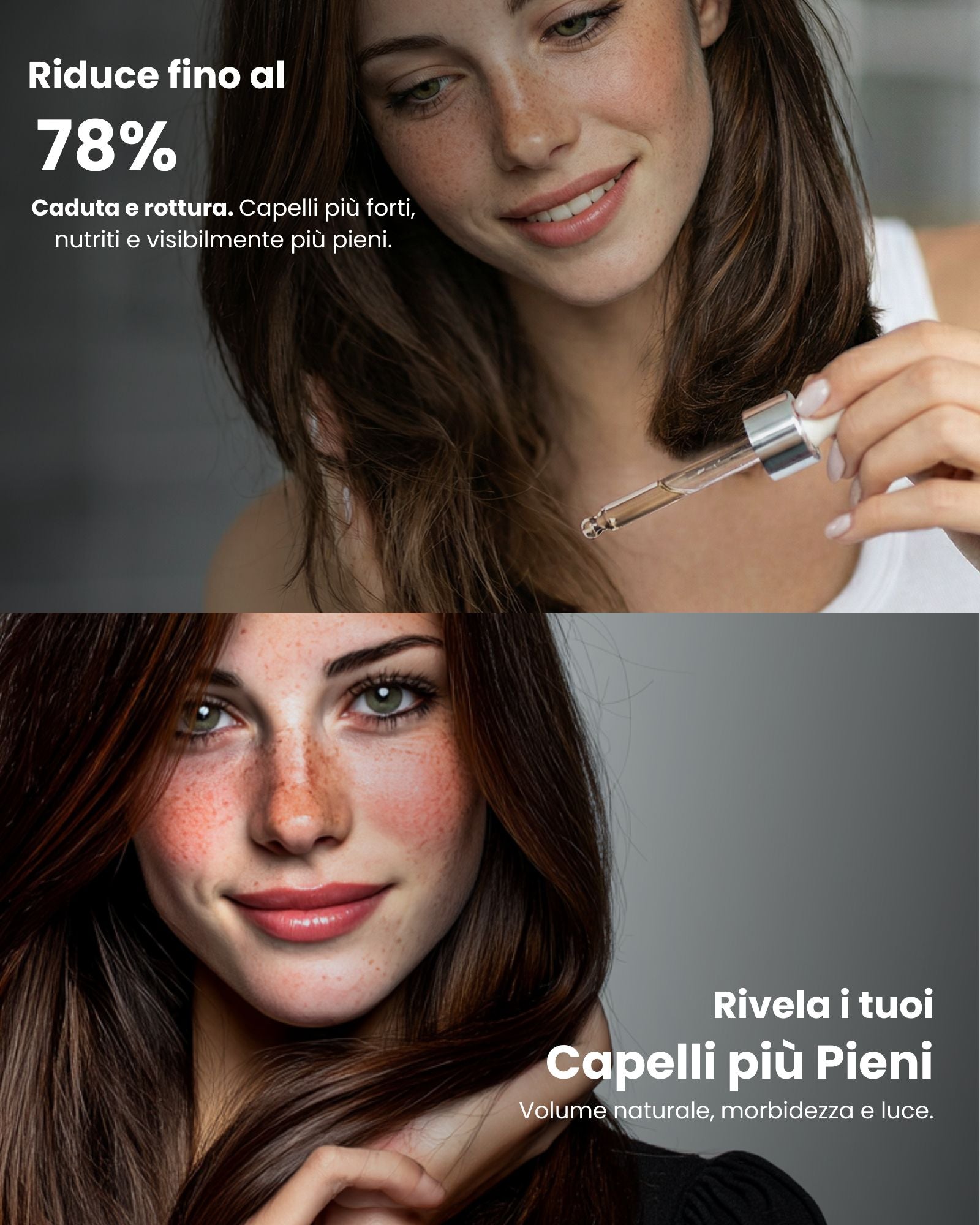 Per donne e uomini con crescita lenta, caduta, rottura frequente, capelli secchi o danneggiati da styling/trattamenti.
