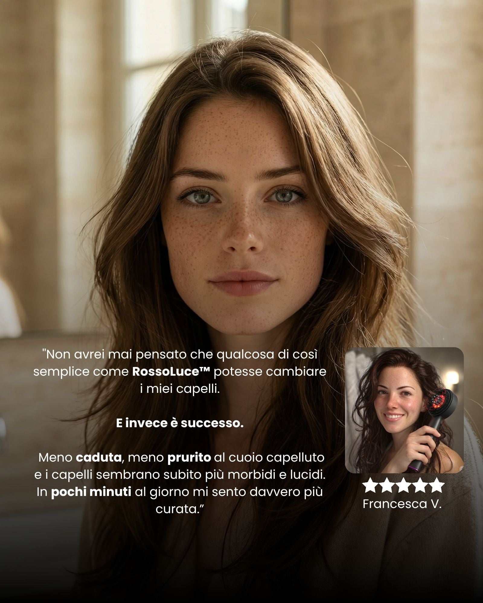 In linea con diversi studi pubblicati dal National Institutes of Health (NIH) sulla terapia a luce rossa e la stimolazione della crescita dei capelli. Tuttavia, i risultati possono variare da persona a persona.