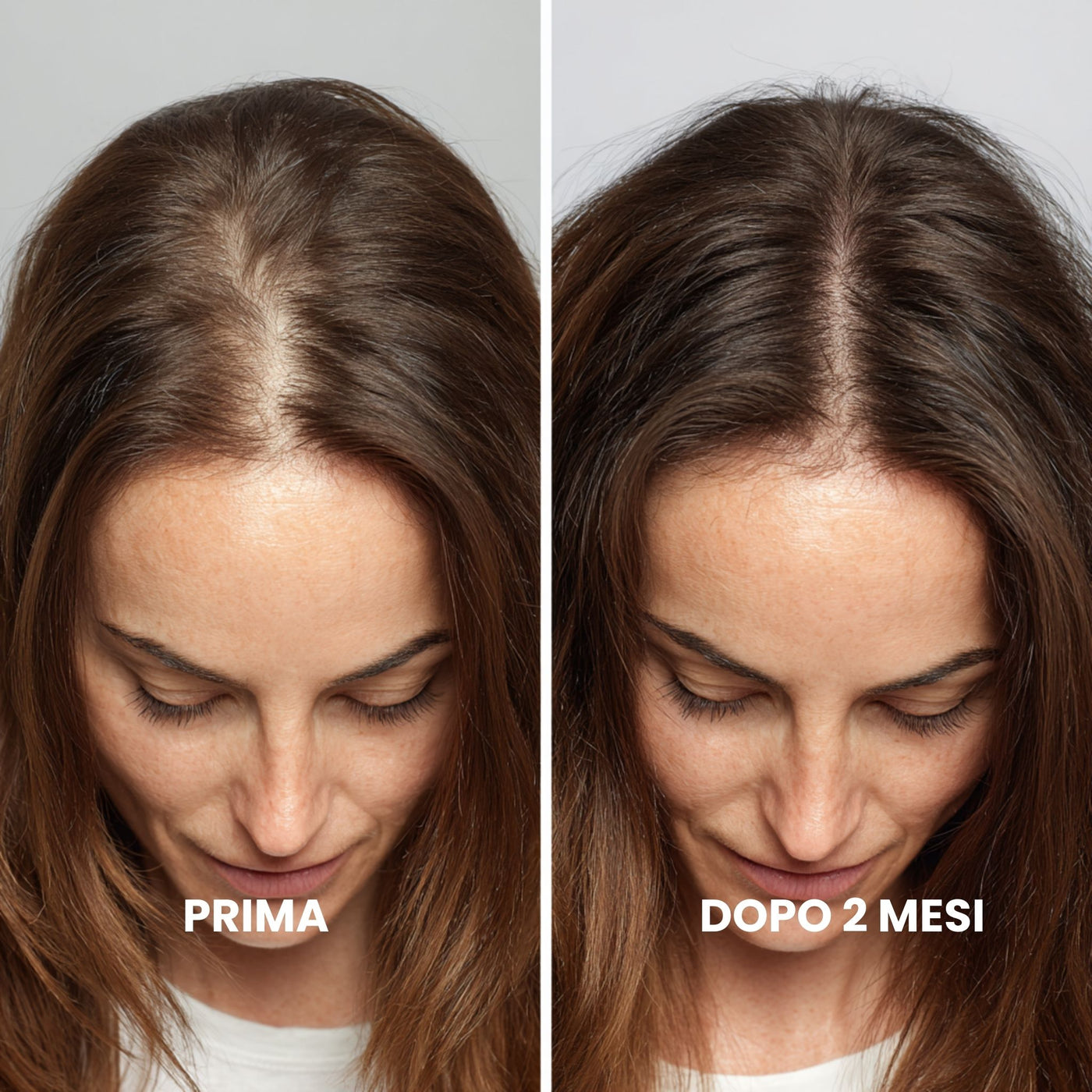Molti notano un cuoio capelluto più sano e una minore caduta entro 3–4 settimane di utilizzo costante. Miglioramenti visibili nella densità e nell’aspetto dei capelli vengono spesso riportati entro 8–12 settimane. Per risultati ottimali, consigliamo un uso regolare per almeno 90 giorni.